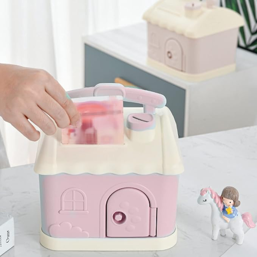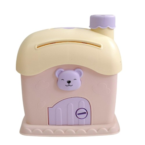 Ev Şeklinde Anahtarlı Kumbara Pembe